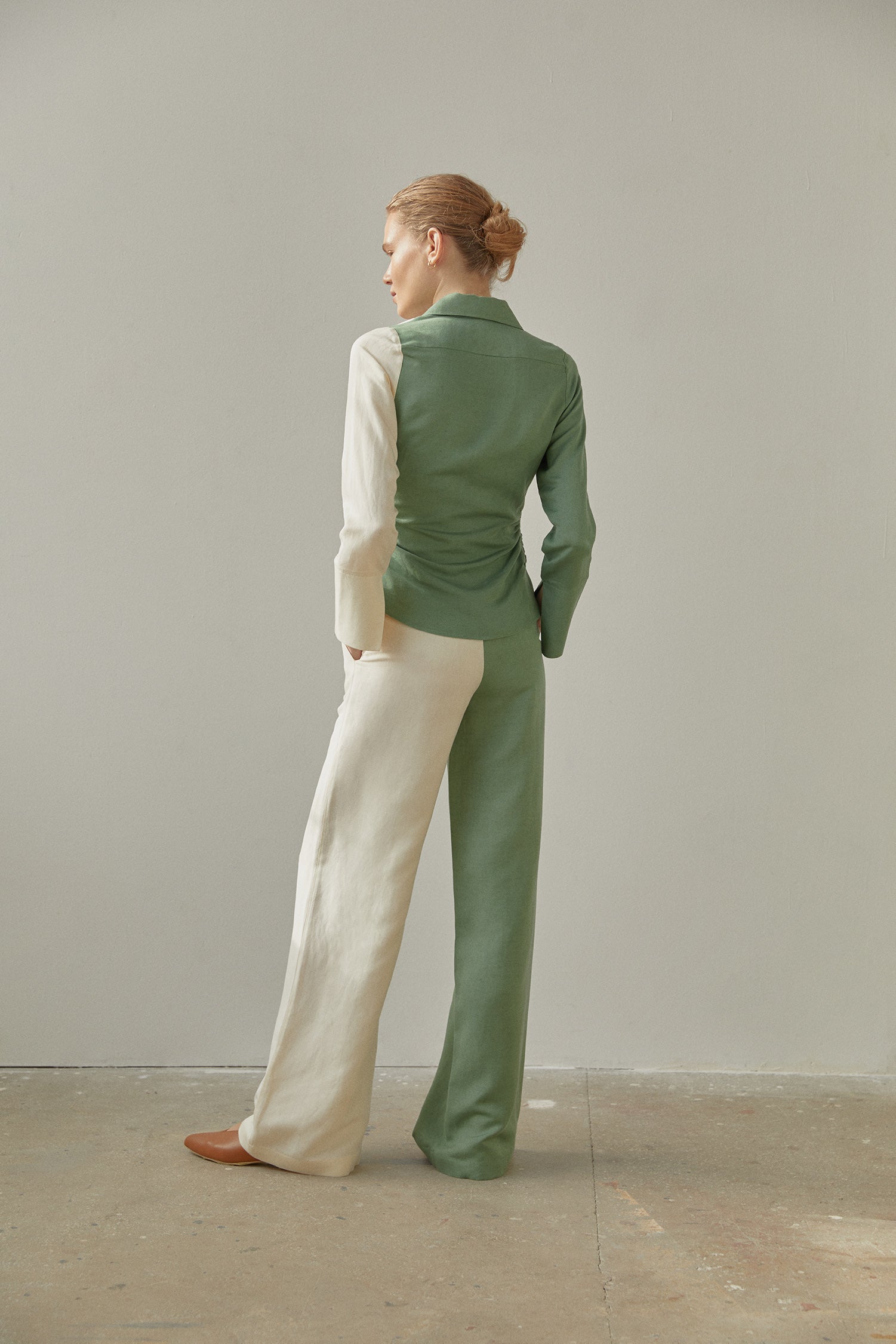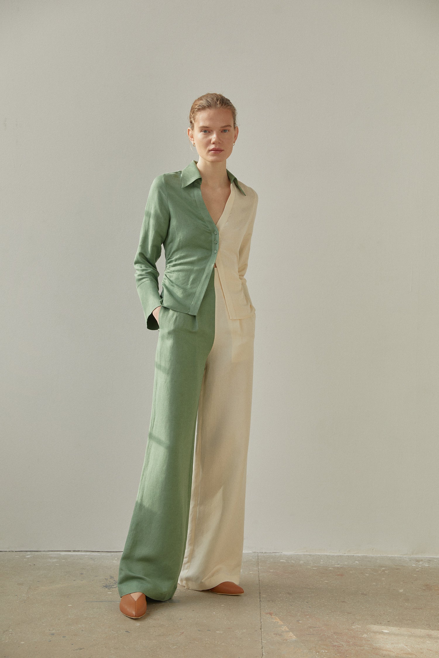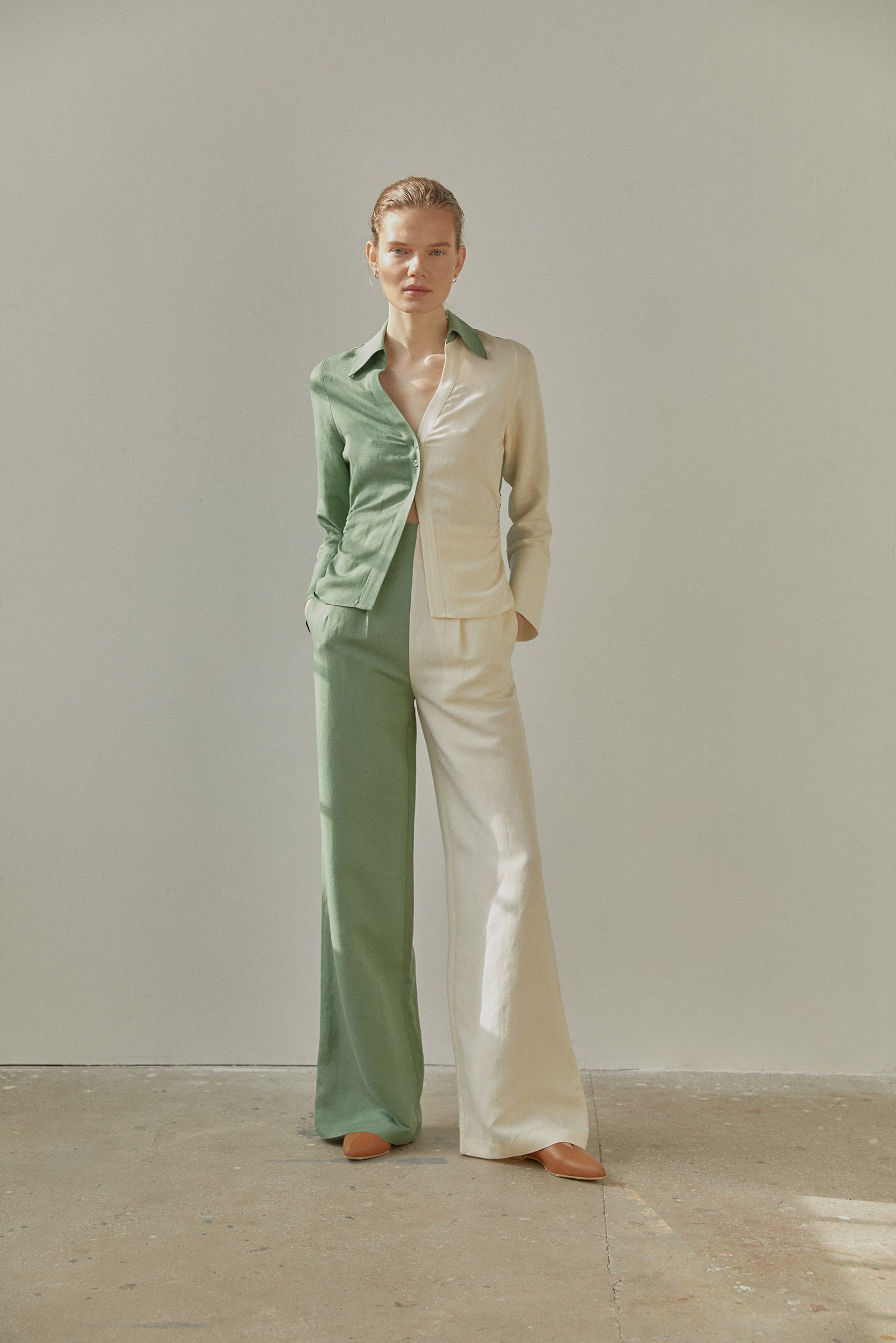 The Ada Pants is designed to sit nicely on the waist with double darts at front and back. This slightly wide legged pants falls loosely from the hips and has side pockets. It is a versatile statement for your summer wardrobe and can be easily styled with one of your favorite tops!