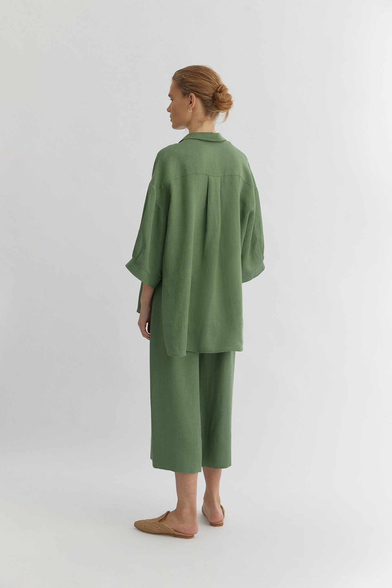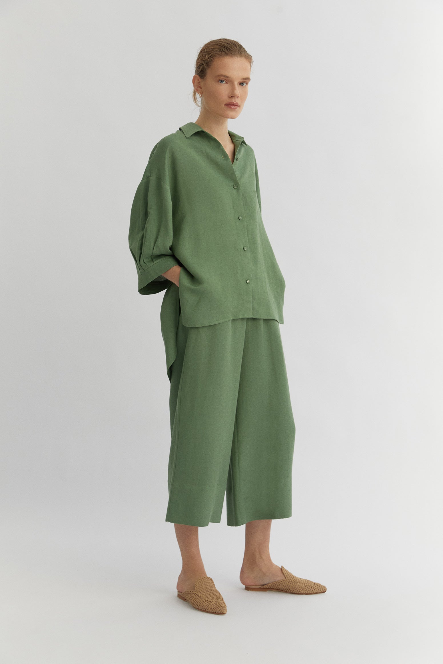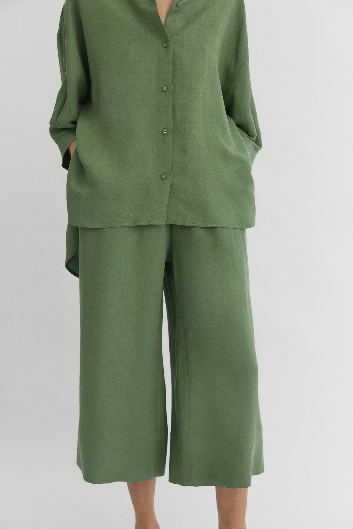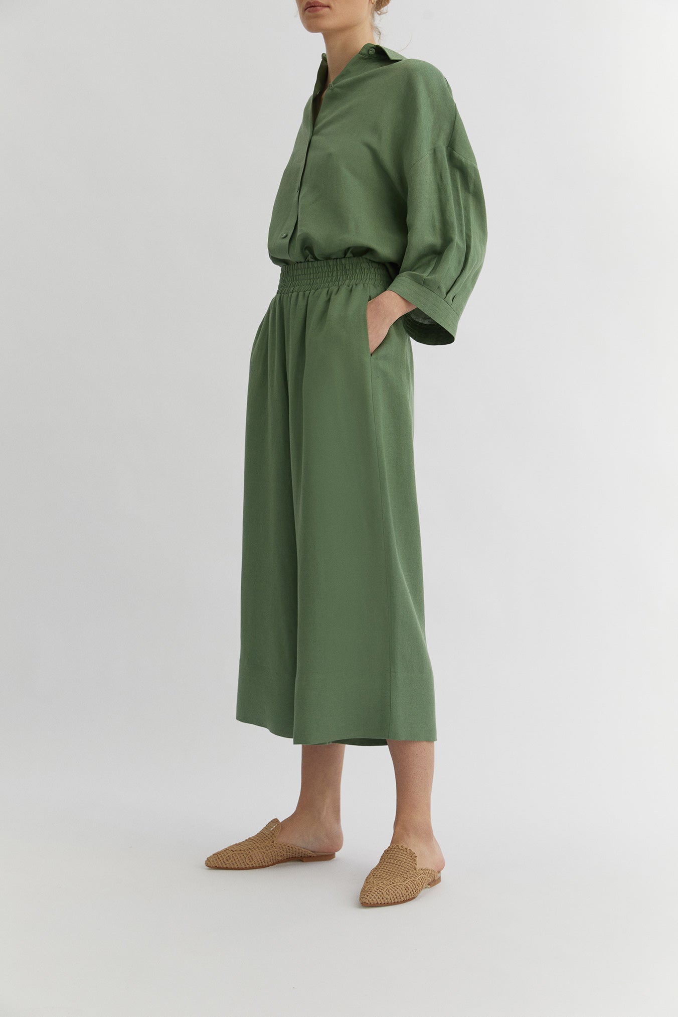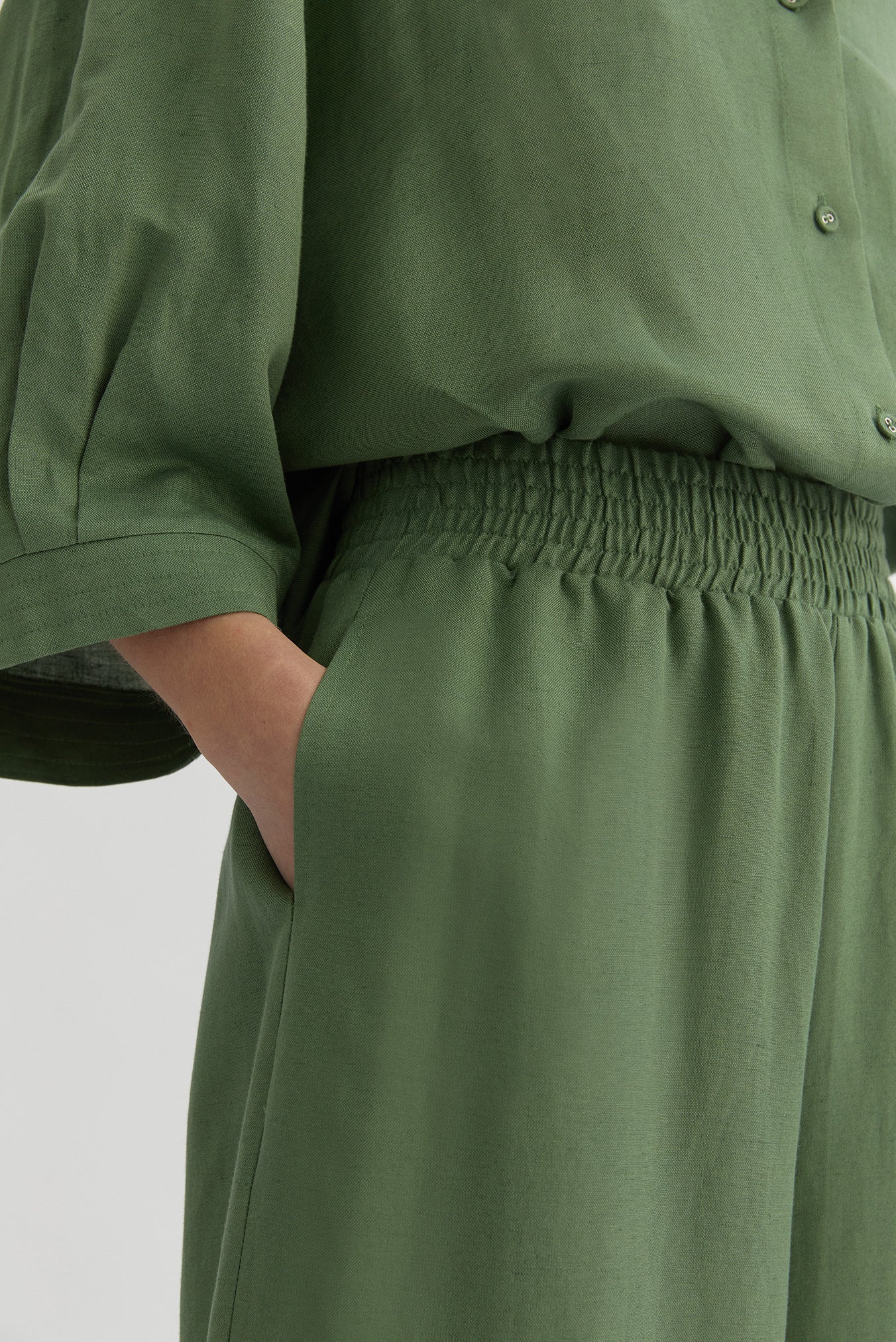 In super soft, light, breathable linen blend, The Alina Pants with its relaxed fit will accompany you throughout the summer. These wide leg pants are perfect for everyday wear. It features an elasticated waist with secret pockets. Pair with Neva shirt, Mihri top or Karla bustier for an effortless look.