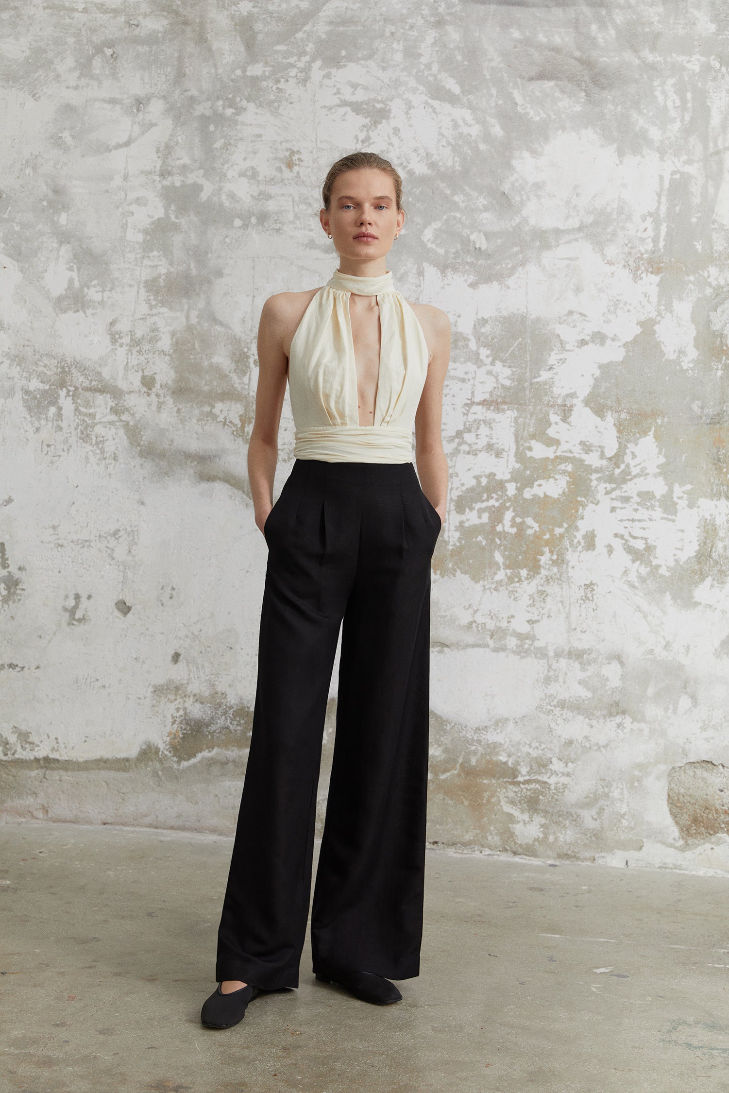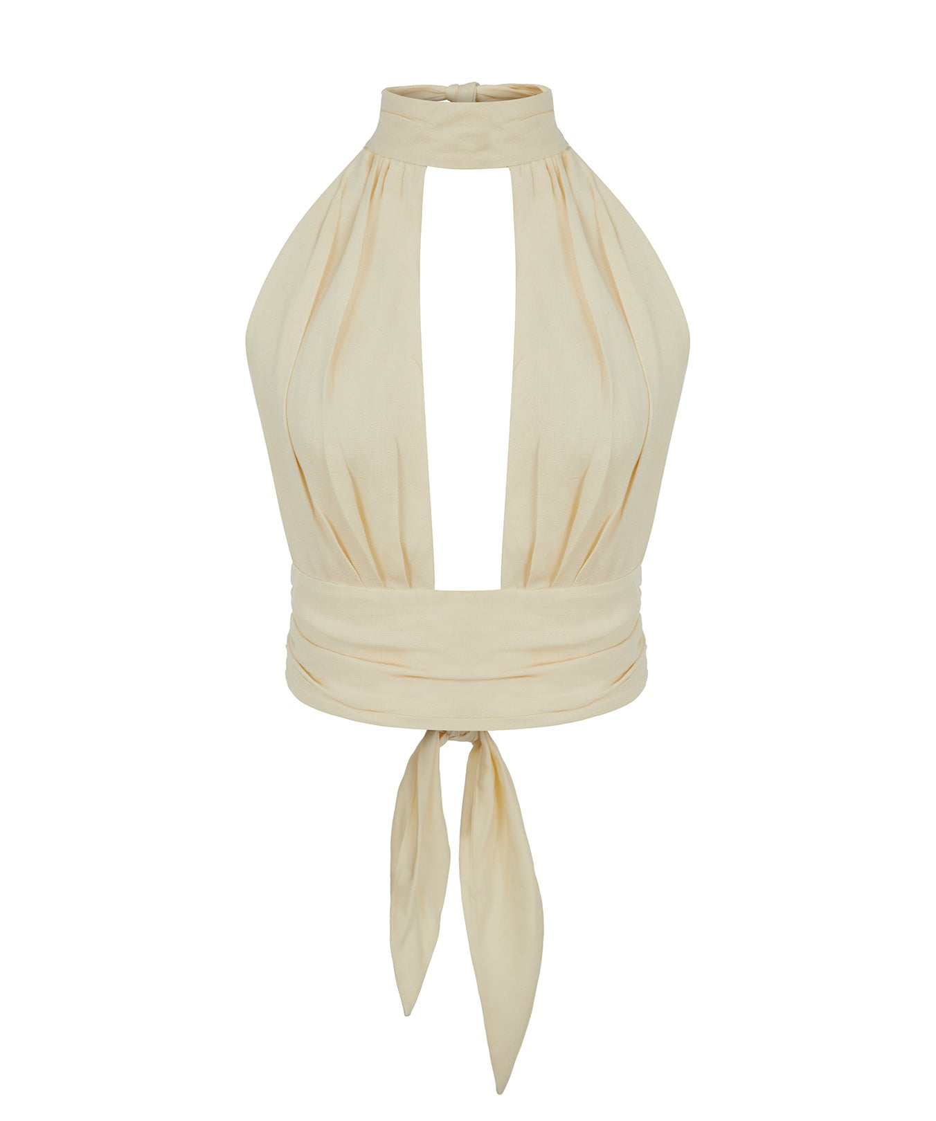Enjoy the summer in Avora Top under the lovely olive trees of Ostuni, Puglia. Cut from super soft linen, this halterneck top with a deep V-opening and draped waist is tied nicely on the back. Pair with Ada pants for a statement look.